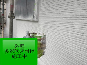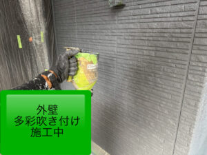 そしていよいよ、大本命の 多彩吹き付け塗装 を2日間にわたり行いました!💪