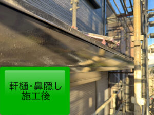 軒樋・鼻隠し・竪樋・シャッターBOX・雨押え・玄関ドア枠は艶ありのフッ素塗料にて塗装✨️