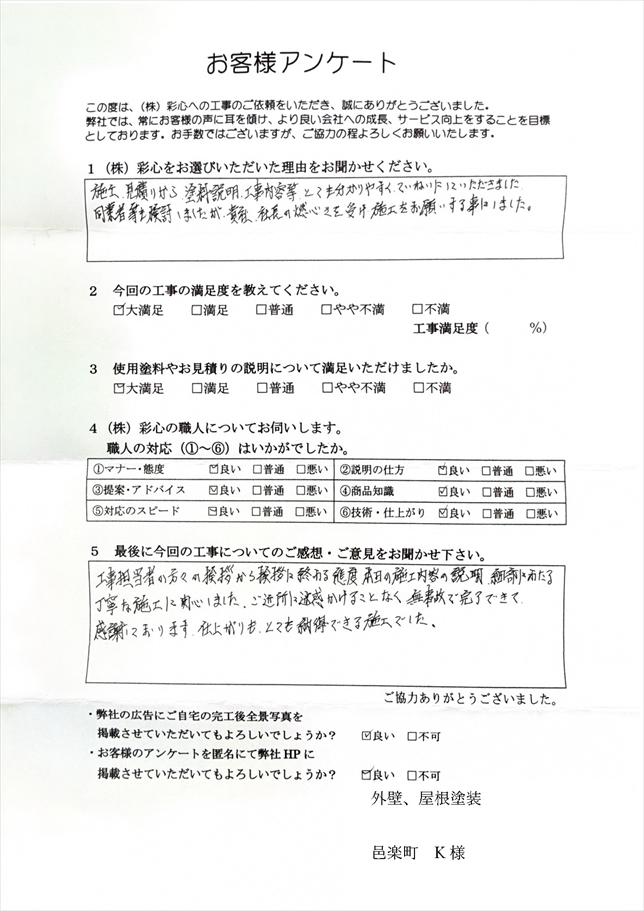 外壁、屋根塗装工事 ⾢楽町 K様