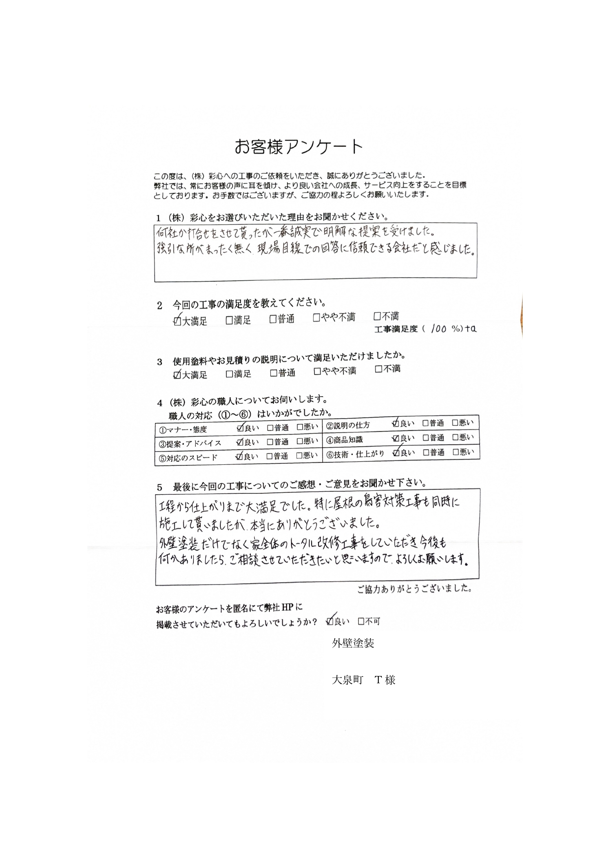 外壁塗装工事 ⼤泉町 T様