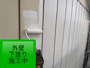今回外壁がセンターサイディングという金属製の外壁材でしたしたので、下塗りにはダイナミックプライマーを使用いたしました💪