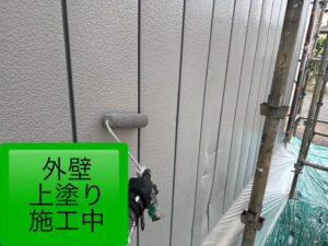 センターサイディングは種類にもよりますが、今回は目地が多く、模様もついており、塗り忘れ・カスレ防止でローラーと刷毛を別々の作業に分け、しっかりと丁寧に施工させて頂きました💪
