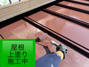 中塗り・上塗りにはダイナミックルーフのチョコレート色を使用し、屋根塗装が完了✨️