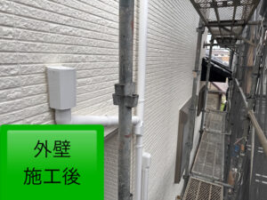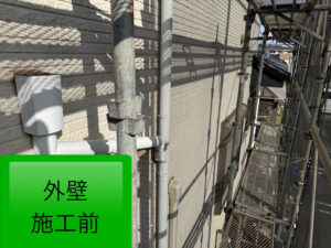 竪樋の塗装においても、経年劣化による色褪せが見受けられ、全体的にくすんだ印象となっていました‪💧‬