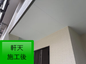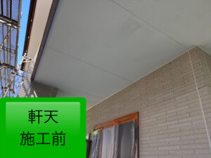 軒天塗装では、既存同様の白のつや消し塗料にて塗装を行い、清潔感のある軒天へ✨